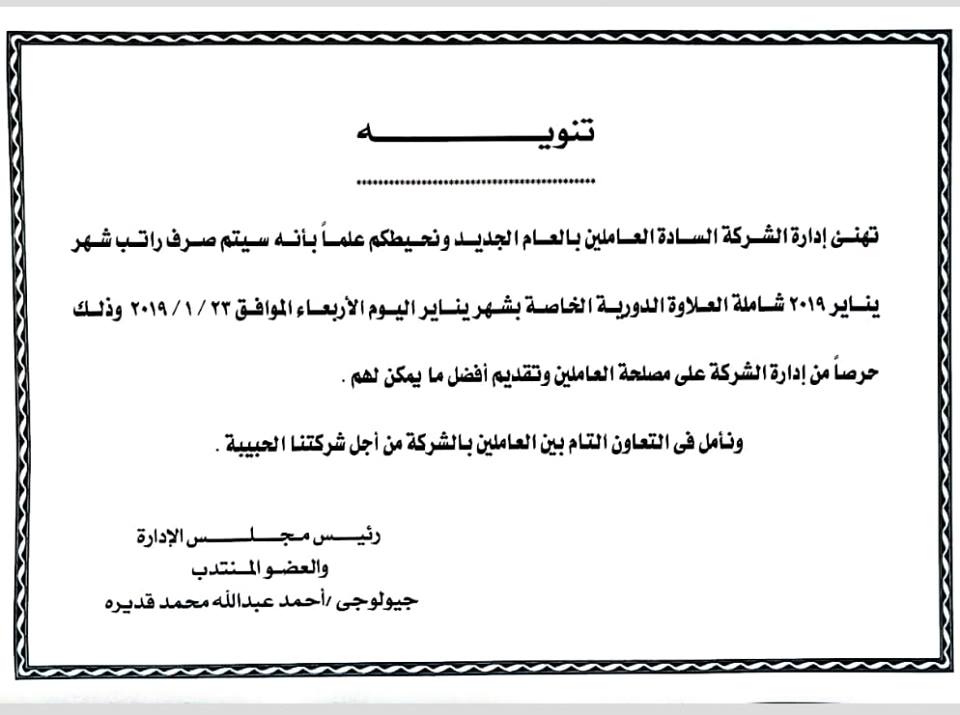 حصاد الأخبار شركة بترول تصرف العلاوة الدورية لشهر يناير الموافقة لـ7 وزارات للإعلان عن حاجتهم لشغل وظائف وكالة أنباء البترول